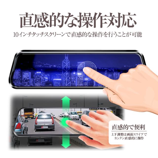 ルームミラー型ドライブレコーダー タッチパネル 10インチフルスクリーン MicroSDカード32GB付き バックカメラ付 前後録画 RMDX6TF16G