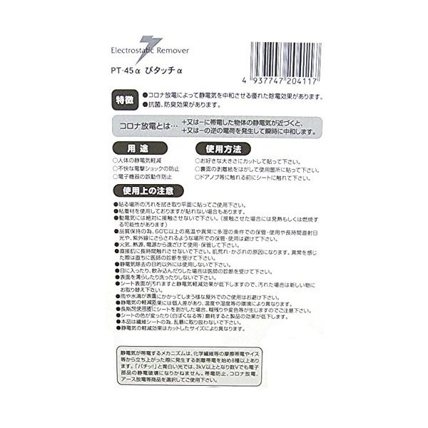 ・品名 … 静電気除去シート ぴタッチ