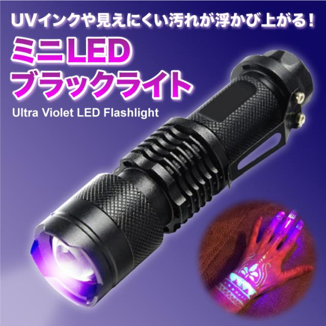 クリップ付きで携帯にも便利な、手のひらサイズのミニLEDブラックライト(UVライト)です。