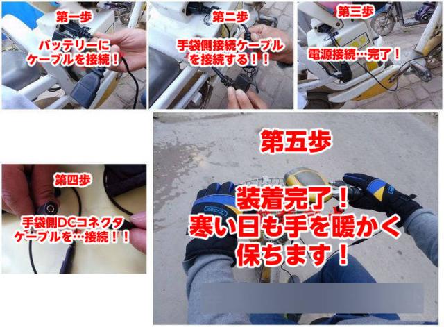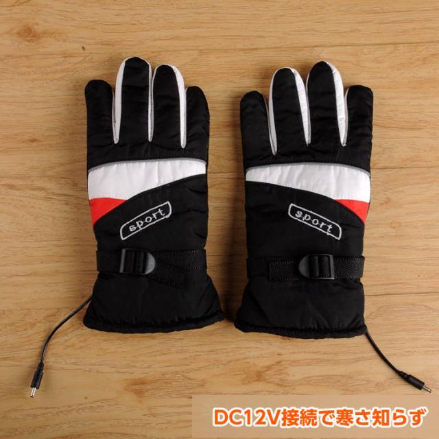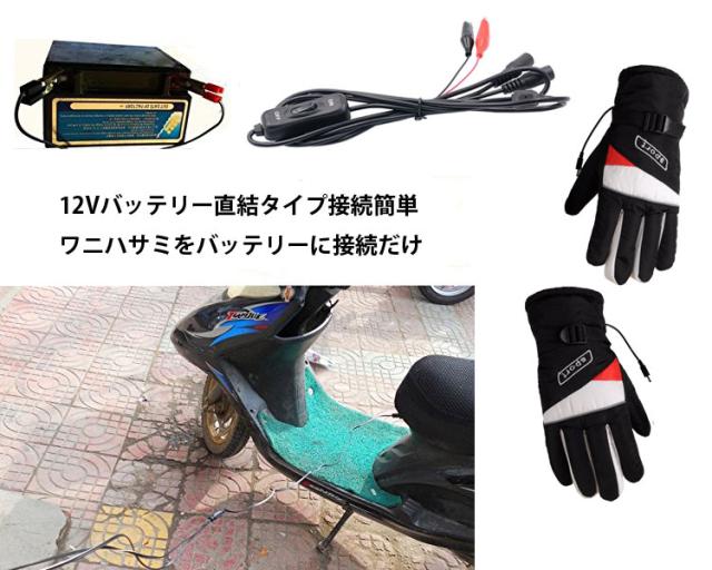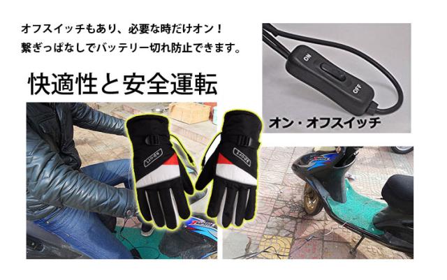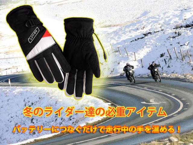 ヒーターグローブ 充電式ホットグローブ 手袋 バイク用 12V直結 防寒 電熱 原付 バイク DC12V ブラック BHOTG12V