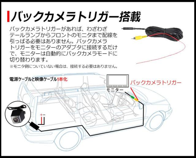バックギア連動タイプの製品と組み合わせることで、バックギアに入れカメラの映像を映し出すことができます。