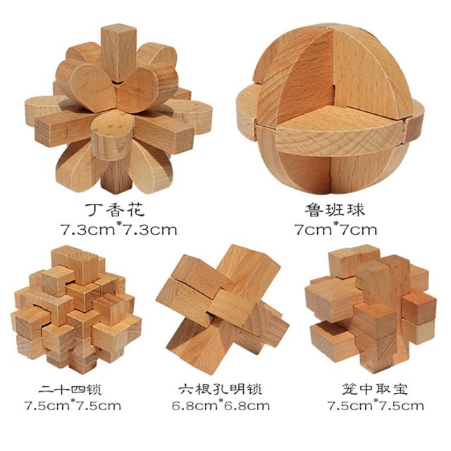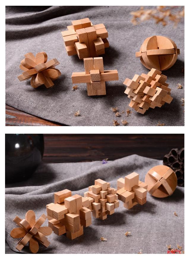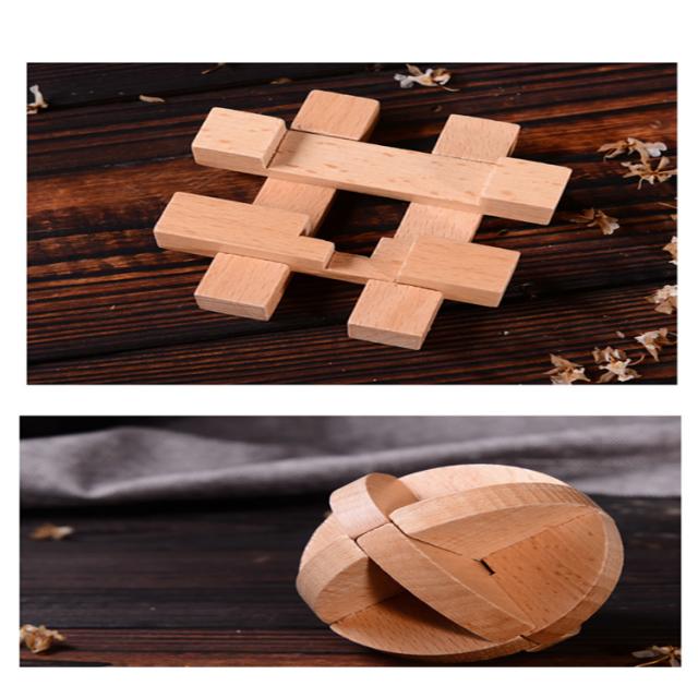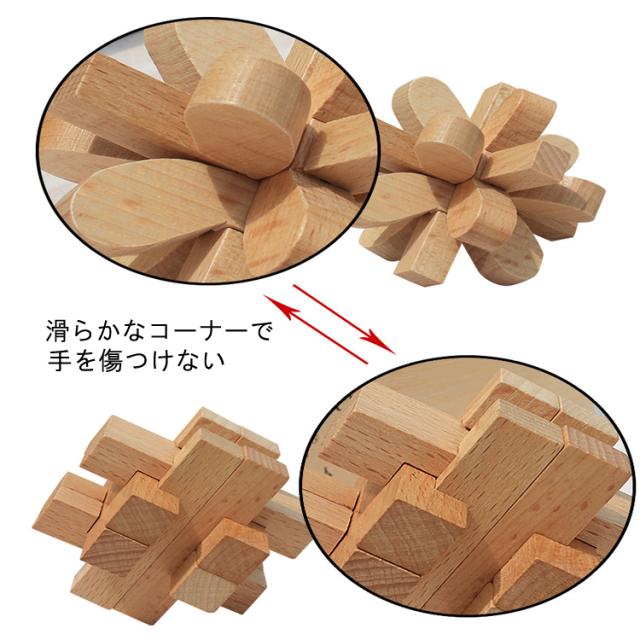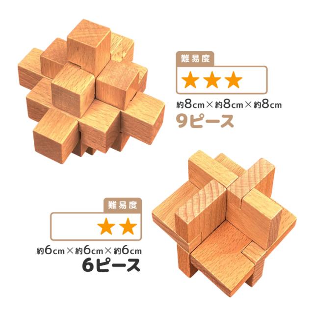 孔明鎖は九つの形の違う木製のピースを組み合わせて遊ぶ玩具となります。