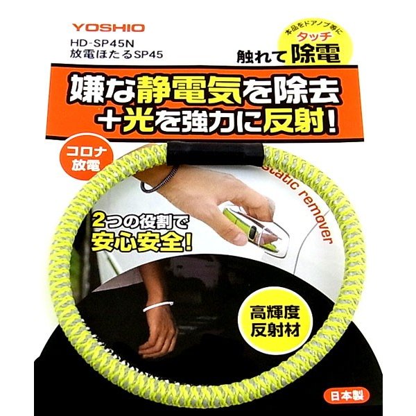 | 特徴 | 二つの役割で、安心・安全 1.触れて除電【タッチ!】 本品をドアノブ等の金属部分に接触させると除電(軽減)します。 2.光を強力に反射します。 夜間、ヘッドライトに強力に反射して安全に身を守ります。 |