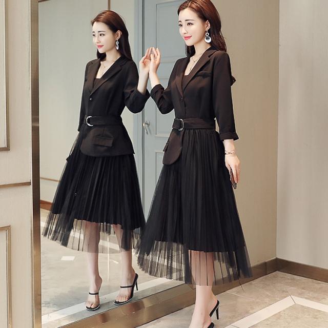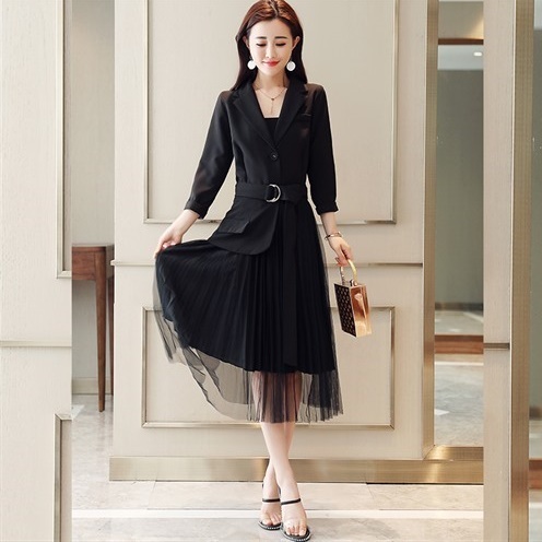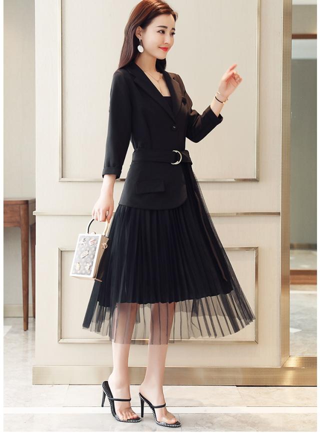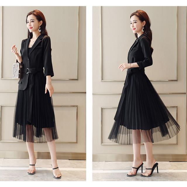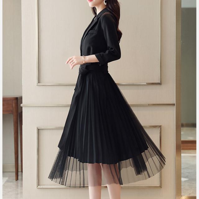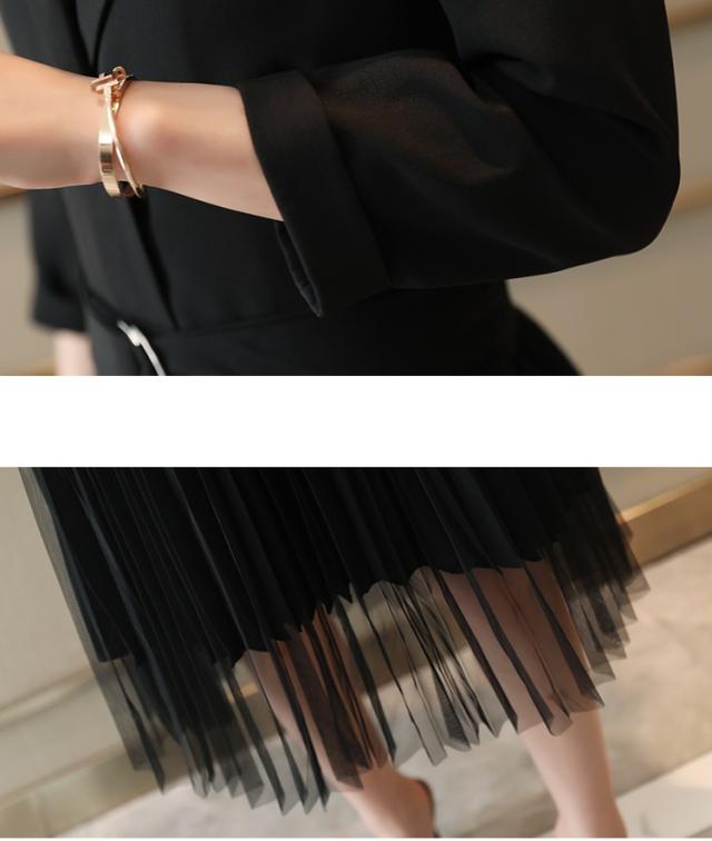 プリーツ ワンピース ロング丈 トレンチ風 シャツワンピース テーラード ジャケット風 ミモレ丈 レトロ シースルー 2019年新作 春秋 人気 トレンド 長袖 ウエストベルト 無地 Aライン オシャレ フォーマルドレス エレガント フェミニン お呼ばれ お出かけ レディース