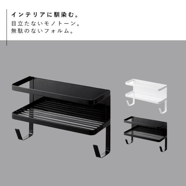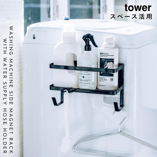 洗濯機横マグネット収納ラック マグネット tower タワー 山崎実業 洗濯機横 洗面所 浮かせる収納 ホワイト ブラック ホースホルダー付き洗濯機横マグネットラック タワー