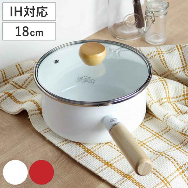 片手鍋 18cm IH対応 ホーロー 蓋付き アミュレット ( ガス火対応 直火 琺瑯鍋 18センチ ソースパン ほうろう鍋 ガラスふた付き ホーロー鍋 北欧風 レトロ オール熱源対応 )