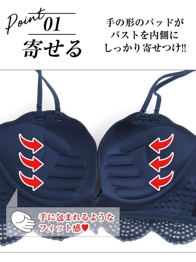 ☆4列3段ホックで安定感抜群の盛れるブラは両手で包まれているようなハンドシェイプデザインでしっかり谷間メイク出来ちゃう厚手パットブラ♪