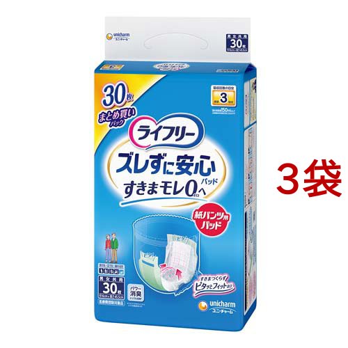 ライフリー ズレずに安心紙パンツ専用尿とりパッド 長時間用 3回吸収 介護用おむつ(30枚入*3袋セット)[尿とりパッド]