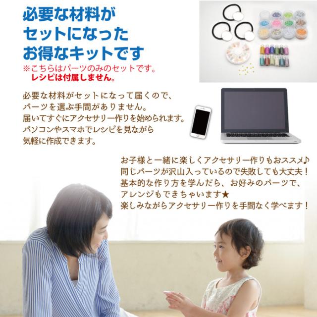 ■商品説明:アクセサリーパーツを作るのに必要なパーツがセットになったお得なレシピキット(アクセサリーセット、レシピキット)です。単品で買うよりもお得なセット価格になっています。