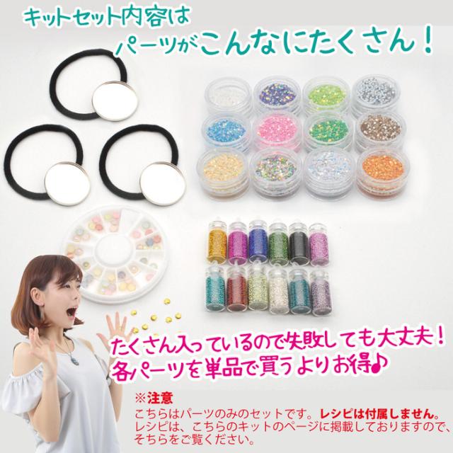必要な材料がセットになっていますので、パーツを選ぶ手間がありませんので、すぐに作成を始められます。(レジン液は別売りとなりますので、別途ご用意ください。)
