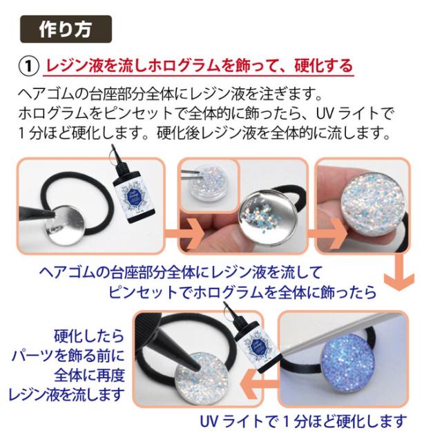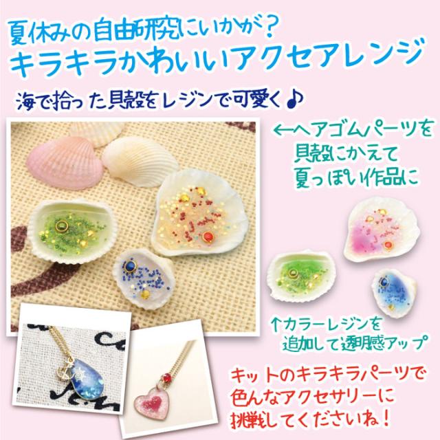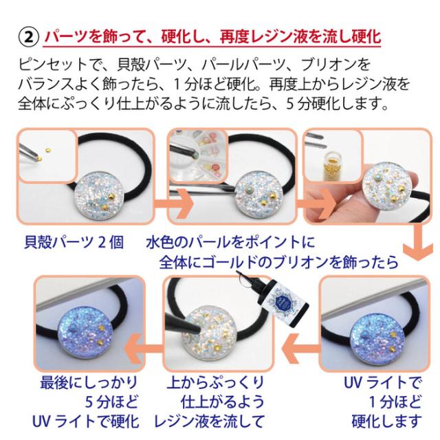 レジン セット キット 自由研究にもおすすめ 夏らしいレジンヘアゴム | 夏休みの工作としてもおすすめ! キット ヘアゴム メタルパーツ ホログラム 貝殻 カラー シェル クラフト パーツ 素材