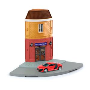童友社 1/64 ダイキャストミニカー ジオラマストリート お土産屋(街角)&アウディ R8 V10です。