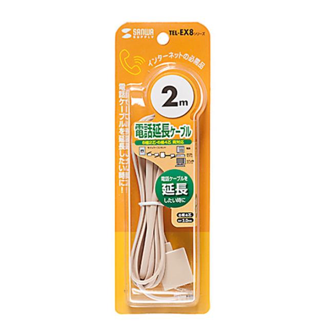 代引不可 電話線 延長ケーブル RJモジュラーコンセントを延長できるケーブル 取り回しに便利 ベージュ 2m サンワサプライ TEL-EX8-2K2