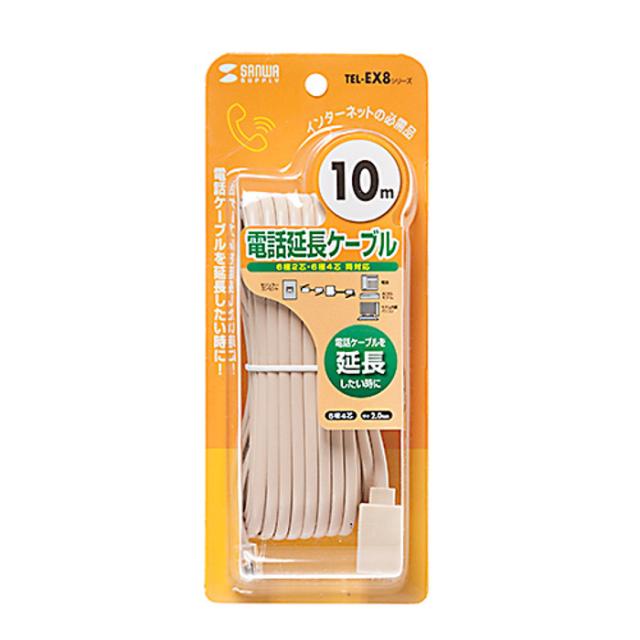 即納 代引不可 電話線 延長ケーブル RJモジュラーコンセントを延長できるケーブル 取り回しに便利 ベージュ 10m サンワサプライ TEL-EX8-10K2