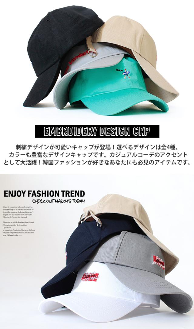 韓国ファッション好きさんにもぴったりのキャップ登場!本格的な刺繍やワッペンデザインがワンポイント♪いつものコーデにアクセントをプラスして◎