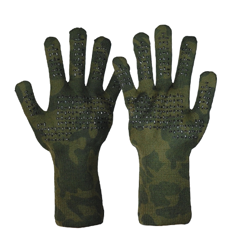 カモフラージュ手袋は寒さと水から手を確実に保護する完全防水手袋です。 インナーに37%のメリノウールを使用することでサーマルレート3の温かい手袋に仕上がっています。 従来のグローブより長い袖口は手首をしっかりラップし、雨または雪の浸入を防ぐだけでなく 風に対する防寒用としても機能します。
