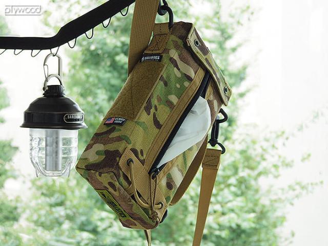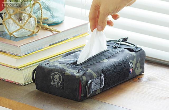 ミリタリー感満載のアウトドア用品やバッグ等を数多く手掛ける期待のジャパンブランド「 BALLISTICS / バリスティクス 」から、ティッシュケースが届きました。ボックスティッシュはそのまま置いておくと生活感が漂いがちですが、こちらのケースでカバーすればミリタリー調にドレスアップ!キャンプ等アウトドアシーンでも、付属するショルダーストラップでデイジーチェーンやチェアなどに吊るすことも可能。ショルダーバッグのように肩からかけることもできます。両手が塞がることもないのでキャンプなどで何か作業をしながらもティッシュペーパーを持ち運べてとても便利です。デザインもミリタリーライクでかっこよく作られているのでおしゃれに決まります。もちろん、家の中に置いてあっても絵になるインテリアに。付属のショルダーストラップは長さ調節可能でお子様も使えます。またこちらのケースで使われているコーデュラナイロンは耐久性、耐水性に優れ、普通のナイロンより7倍もの強度がある頑丈な生地として世界中で使用されていますのでケースの品質も安心です。カラーは8色と豊富な中からお選びいただけます。