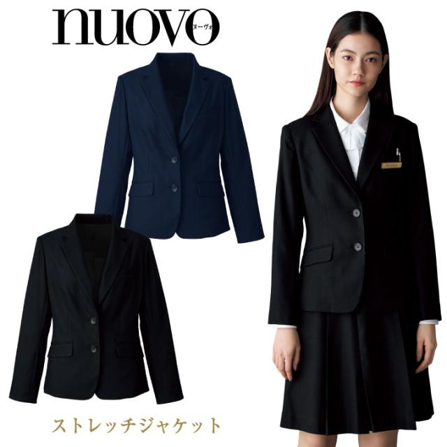ジャケット レディース 2つボタン ストレッチ nouvo ヌーヴォ フォーク オフィスウェア フォーマルウェア 制服 事務服 スーツ 長袖 fo-fj15708