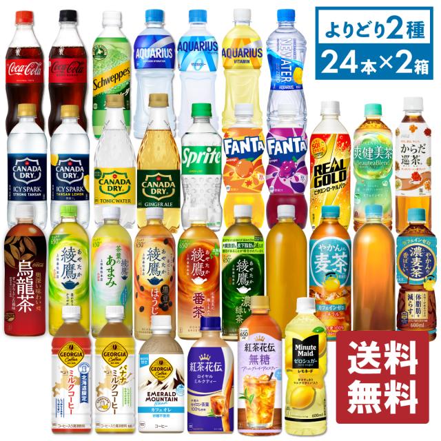 水 炭酸水 ペットボトル コカ・コーラ よりどり 綾鷹 爽健美茶 やかんの麦茶 アクエリアス 紅茶花伝 440-650mlPET×24本入 選べる2箱 【送料無料】