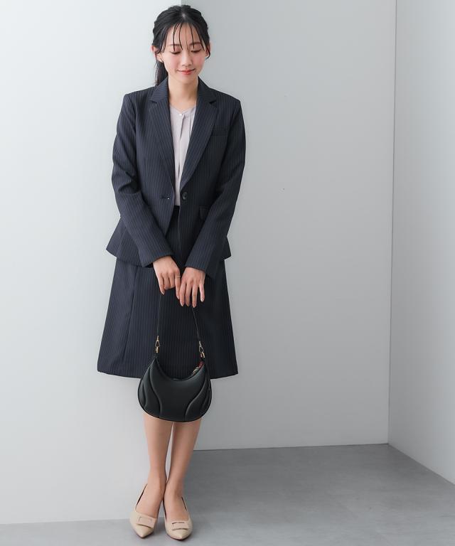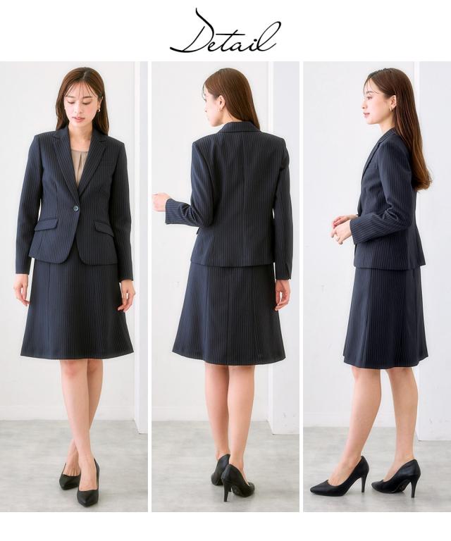 スーツ レディース バスト +3cm 大きい グラマーサイズ 洗える セミフレアスカート 7号/9号/11号/13号 黒無地/紺/グレーストライプ 上下セット オフィス ビジネス 通勤 仕事 女性 ニッセン nissen
