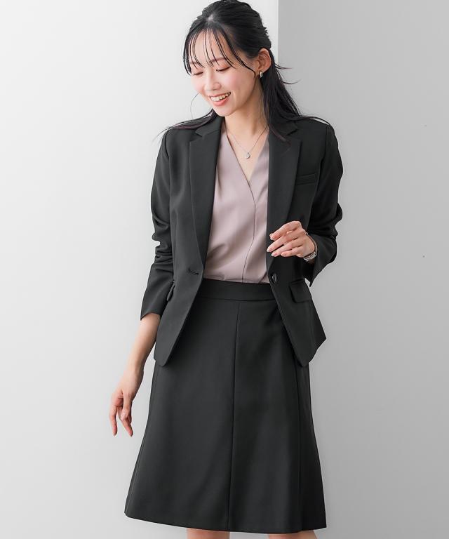 スーツ レディース バスト +3cm 大きい グラマーサイズ 洗える セミフレアスカート 大きいサイズ 26号 30号 34号 38号 黒無地/紺/グレーストライプ 上下セット オフィス ビジネス 通勤 仕事 女性 ニッセン nissen