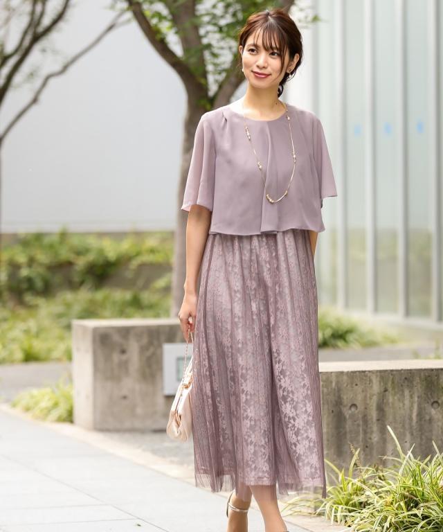 レースとチュールプリーツを組み合わせたこだわりのワンピースドレス ●こだわりポイント レースとチュールプリーツを重ね合わせたこだわりスカートが華やかさを演出。 絶妙な配色のスカートに仕上げました。 ふらしデザインが、ふんわりとした大人可愛い雰囲気に。 繊細なデザインの中にシンプルさもあり、大活躍間違いなしのドレスです。 ●体型カバーポイント ふらしデザインで気になるお腹周りをカバーしてくれます。 透け感のある袖レースは華奢見せや二の腕カバーが期待できます。 ●おすすめ着用シーン 【結婚式】【二次会】【謝恩会】【同窓会】【お食事会】【お呼ばれ】【セレモニー】【演奏会】など幅広いシーンで着用いただけます。 ※注意コメント デザインによりサイズ感が異なりますので、詳しい仕立てサイズ表をご確認ください。 お客様のパソコン・スマホのモニターや照明等により、実際のお色と多少異なるように感じられる場合がございます。 ご了承ください。