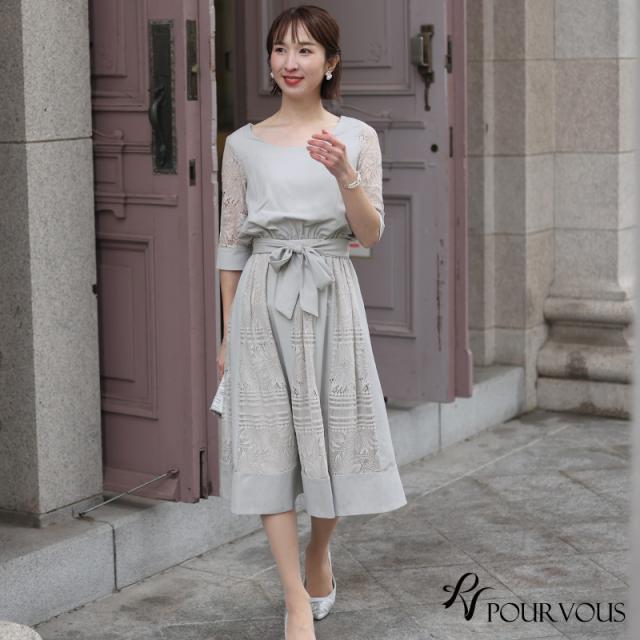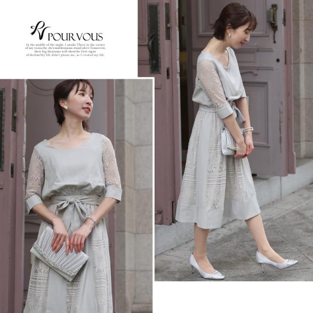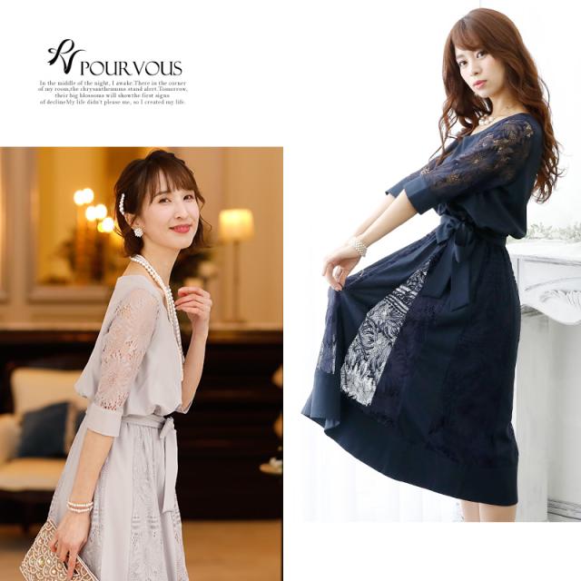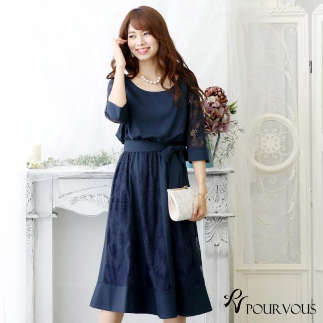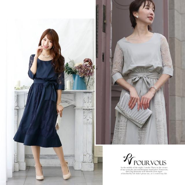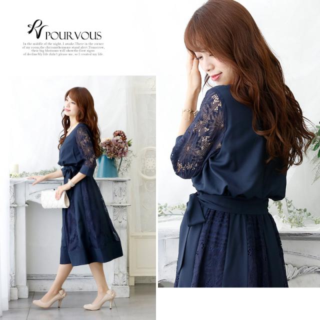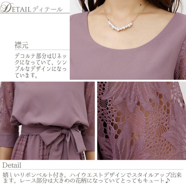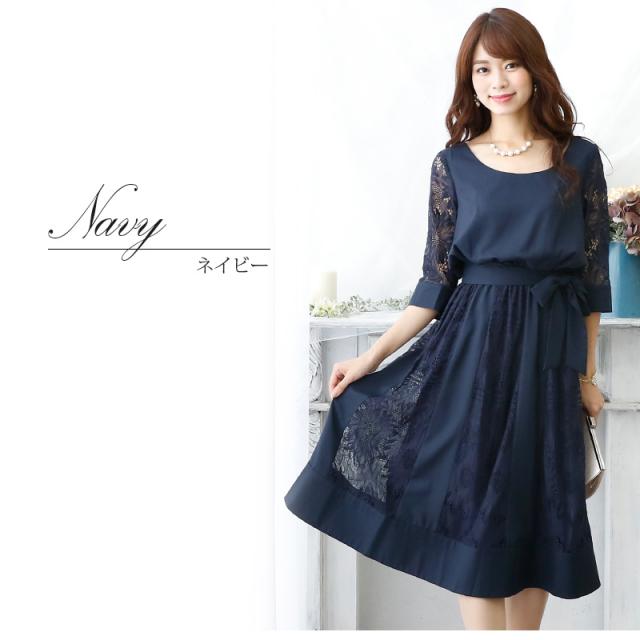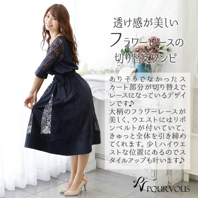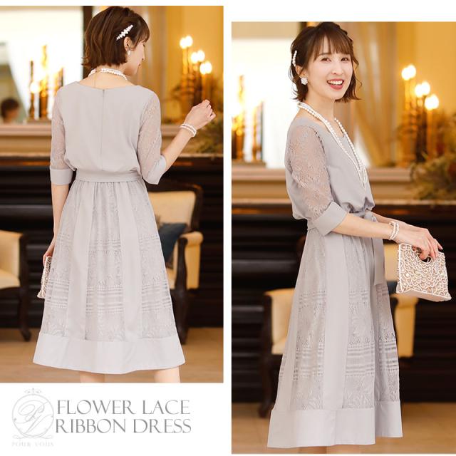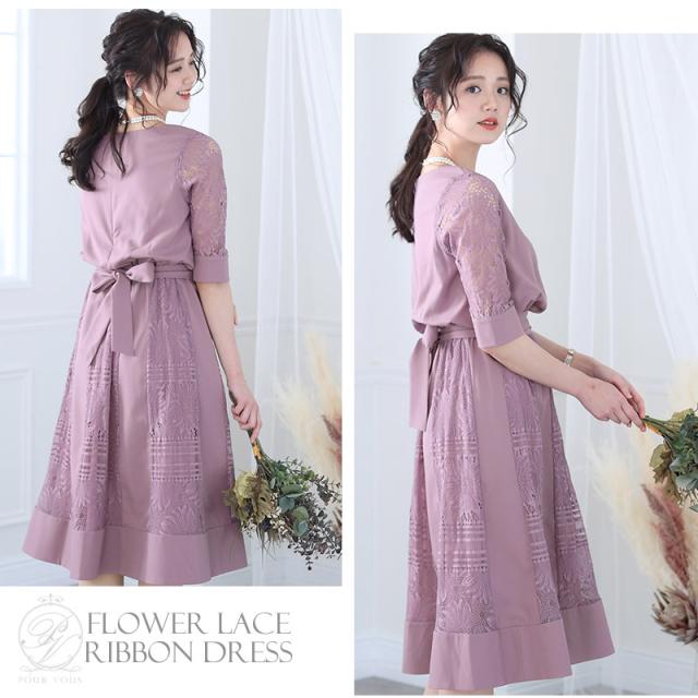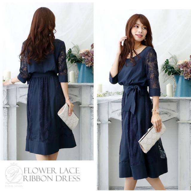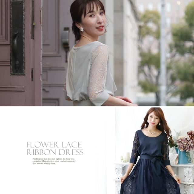 フラワーレースリボンドレス【3284】10代・20代・30代・40代・50代ドレスワンピ・フォーマルワンピ・服装・袖あり・ワンピース・ドレスカジュアル・ブランド・七分袖・半袖・膝丈・薄手・刺繍・花柄・脚長効果・伸縮性・キレイめ・着やせ・体型カバー・スタイルアップ・総レース・リボンなど・営業日での即日発送や12000円以上送料無料・・ご利用シーン・結婚式・婚活・披露宴・顔合わせ・発表会・演奏会・二次会・同窓会・お呼ばれ・食事会・謝恩会・親族・七五三・お宮参り・冠婚葬祭・弔事・女子会・韓国・デート・入学式・卒業式・入園式・卒園式・ママ・ピアノ・マタニティー・セレモニー・セレブ・パーティー
