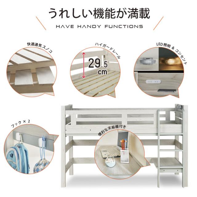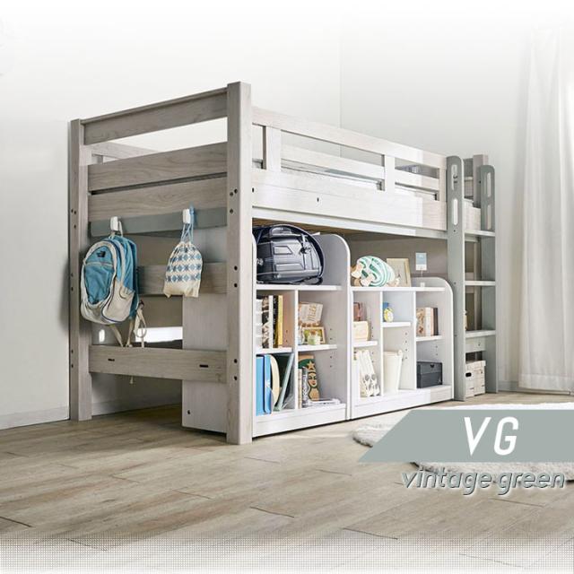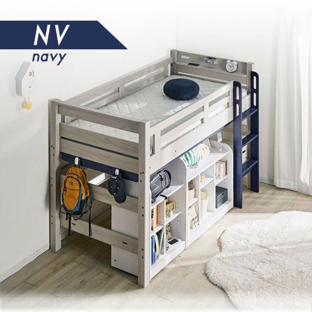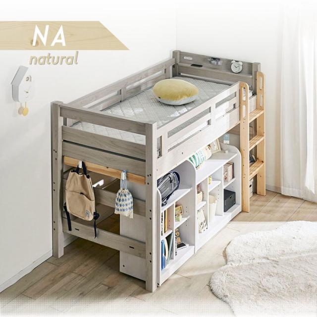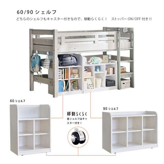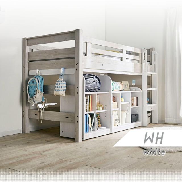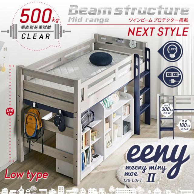 【特許構造】宮付き ロフトベッド eeny(イーニー) Low shelf+shelf H135cm 4色対応 ロータイプ システムベッド 学習机 学習デスク ランドセルラック 収納棚 キャスター付き 子供 大人 木製 おしゃれ