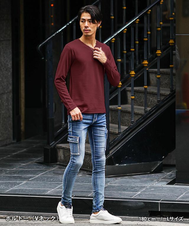 【メール便対応】新作 長袖Tシャツ メンズ ブランド クルーネック Tシャツ メンズ 長袖 Vネック Tシャツ ピチピチ ロンT ロングTシャツ 無地Tシャツ ロングスリーブ ぴったり スリム 筋肉 白T 無地 丸首 細身 タイト メンズファッション ちょいワル 秋 新作 秋新作 春新作