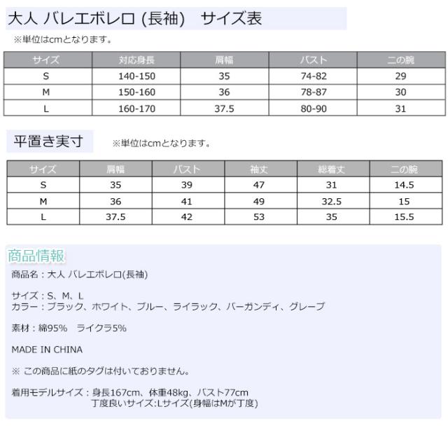 大人 バレエボレロ(長袖)・レオタードの上に着るウォームアップ用バレエ衣装 バレエウェアトップス 格安通販のバレエ用品 ※今後の入荷はございません。