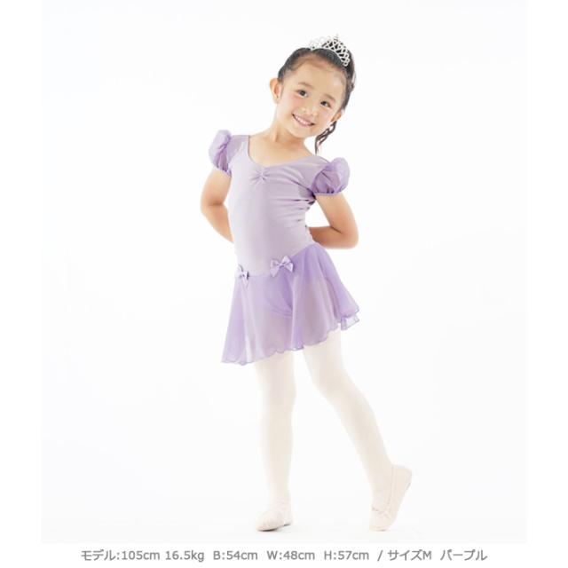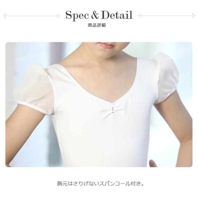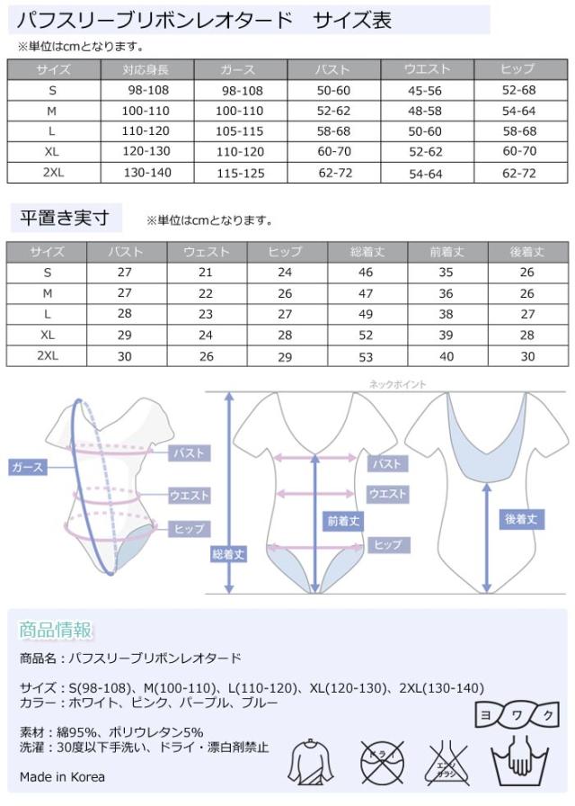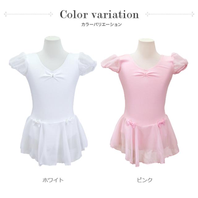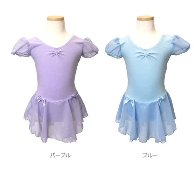 バレエ レオタード 子供 ジュニア 【Ballet-i】パフスリーブリボン キッズ レッスン着 新体操にも 格安バレエ用品 白/ピンク/水色/紫 98/100/110/120/130/140