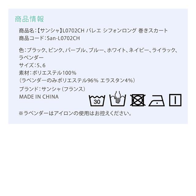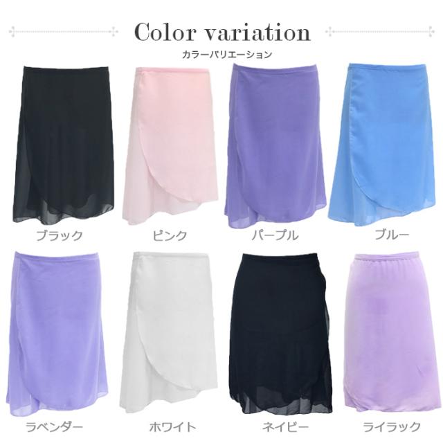 【サンシャ】L0702CH シフォンロング巻きスカート ジュニア&大人用 格安通販のバレエ用品(練習着/レッスンに) 黒 ピンク パープル ブルー ホワイト ネイビー ライラック ラベンダー