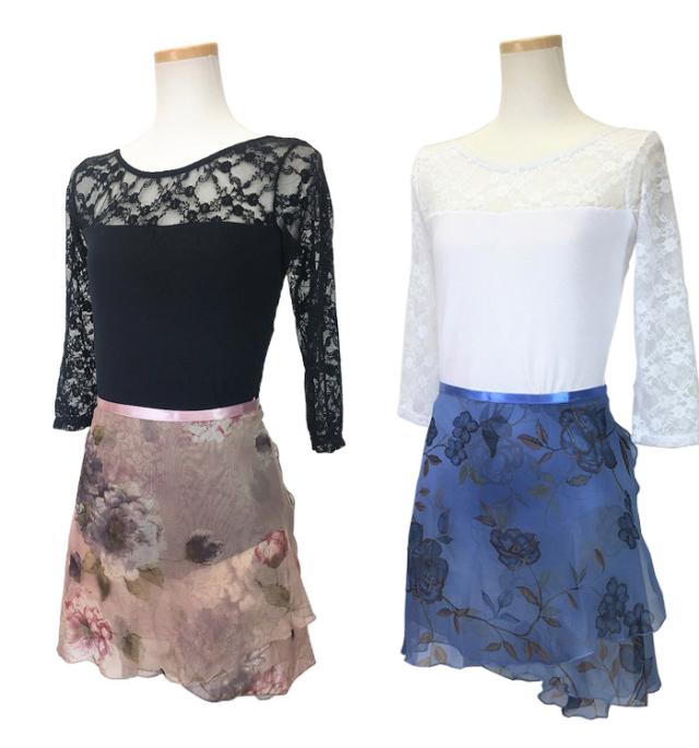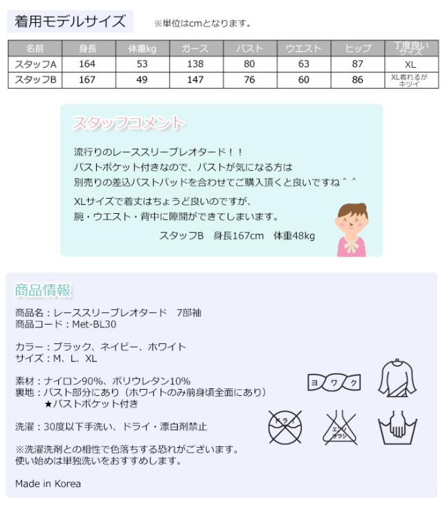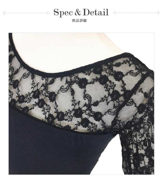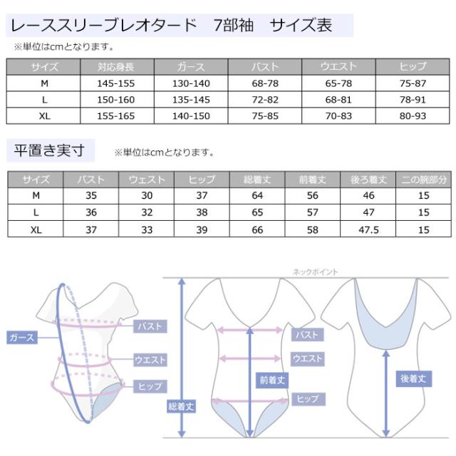 【20%off・在庫特価】バレエ レオタード 大人 ジュニア スカートなし レーススリーブレオタード 七分袖 バストポケット付き 花柄レース レッスン着 舞台衣装 新体操にも 格安バレエ用品 白/黒/紺 145/150/160/165