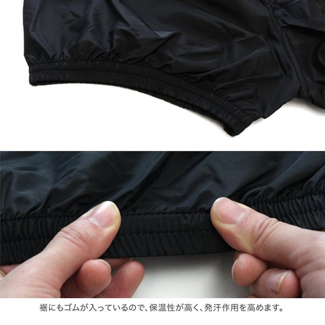 裾とウエストにはゴムが入っているので、身体からの熱を閉じ込めます。
