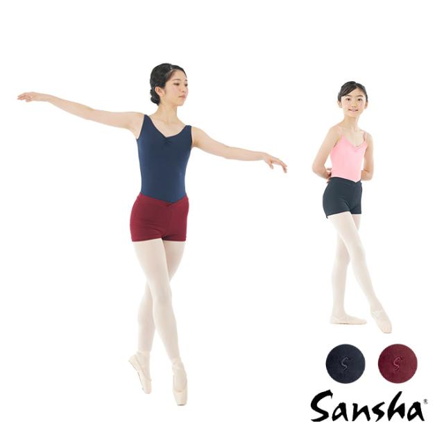【サンシャ】L0655C Vラインバレエショートパンツ ジュニア&大人用 バレエウォームアップ バレエボトムス 黒(ブラック)バーガンディー 格安バレエ用品