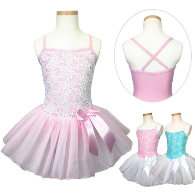 バレエ レオタード 子供用 ジュニア スカート付き フラワーレースチュチュレオタード キッズ 花柄刺繍レース 肩紐 新体操にも 格安バレエ用品 ピンク/白/ブルー 100/110/120/130