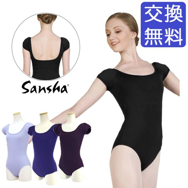 バレエレオタード 大人用 ジュニア スカートなし【サンシャ】LE3510M TANZANIA 半袖 バストライナー付き レッスン着 新体操にも 格安バレエ用品 黒/紫/ラベンダー 145/150/160/170