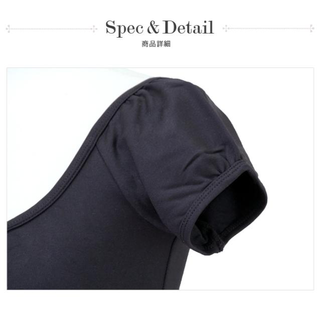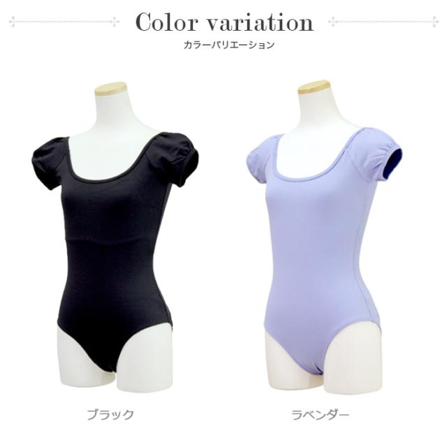パフスリーブとU字型の襟ぐりがとても可愛いらしい上品なレオタードです。