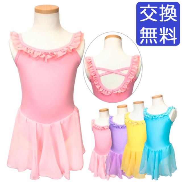 バレエ レオタード 子供用 ジュニア シフォンスカート付き シャーベットシフォンレオタード キッズ レッスン着 新体操にも 格安バレエ用品 ピンク/紫/青/黄色 肩 フリル 95/100/110/120/130/140