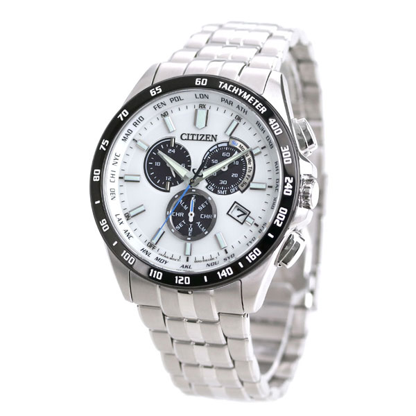 シチズン コレクション クロノグラフ エコドライブ電波 CB5874-90A 電波ソーラー 腕時計 ソーラー電波腕時計 ソーラー電波時計 メンズ ホワイト CITIZEN COLLECTION ブランド おしゃれ 防水 プレゼント 男性 実用的