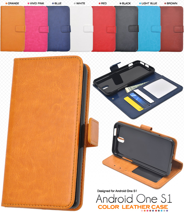 手帳型 Android One S1 Y mobile 用 カラーレザーケース 横開き シンプル かわいい スマートフォン 保護カバー AndroidOneS1