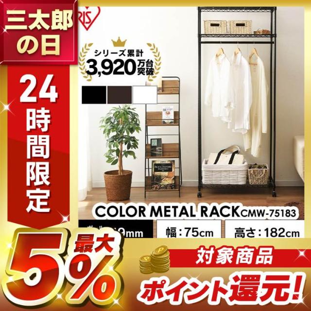ワードローブ ハンガーラック おしゃれ スリム 省スペース スチールラック CMW-75183 一人暮らし 新生活 ラック カラーラック ハンガーラック 幅約75×奥行約45×高さ約182 3段 キャスター付き ラック 収納 おしゃれ 送料無料 【int】