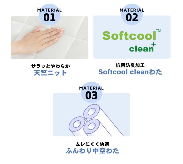 中わたには抗菌防臭機能のあるNEW Softcoolわたを使用。