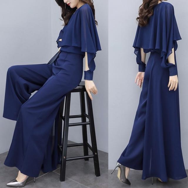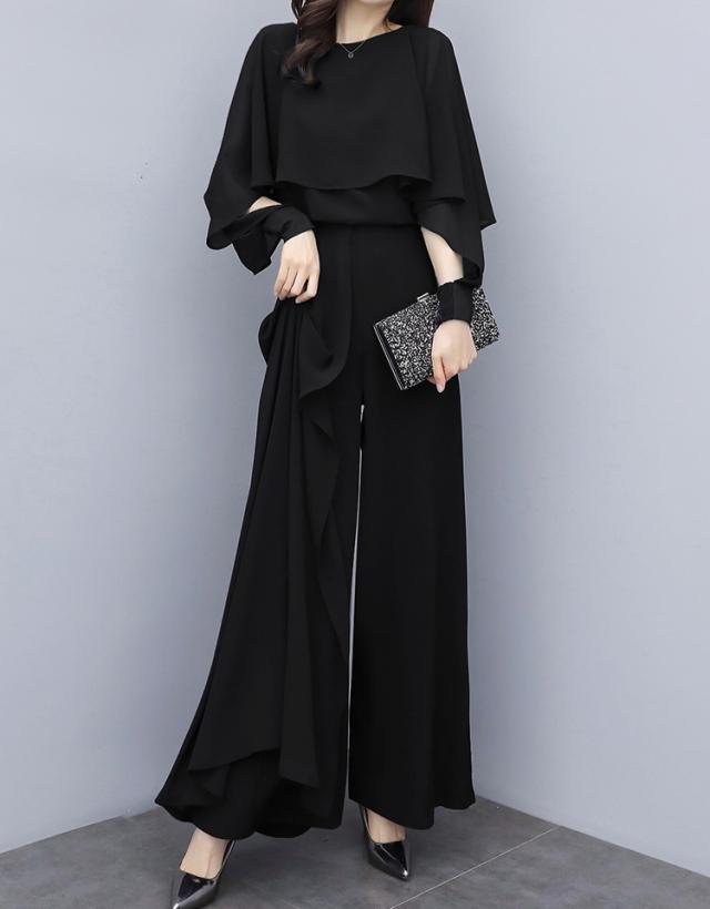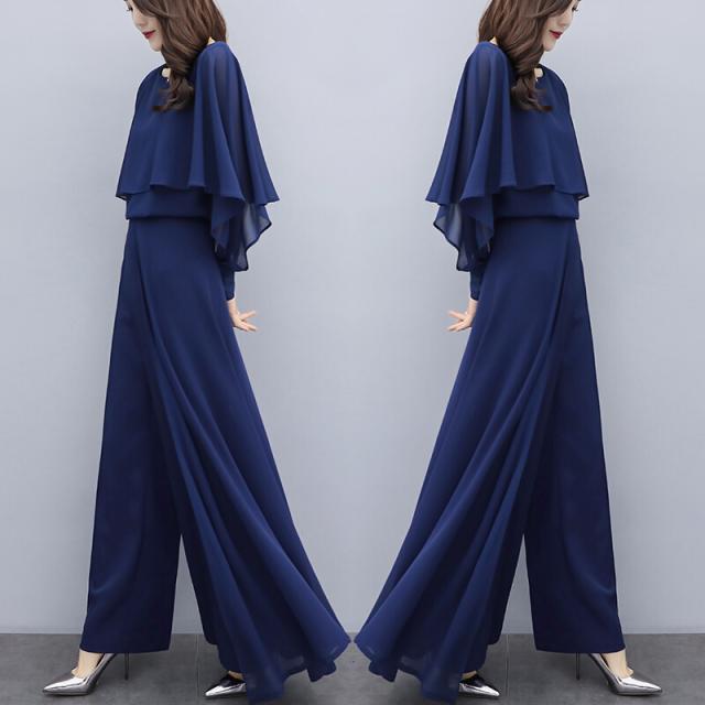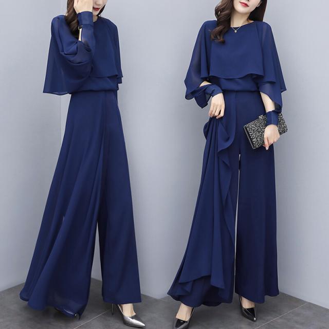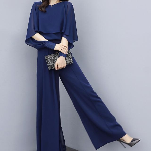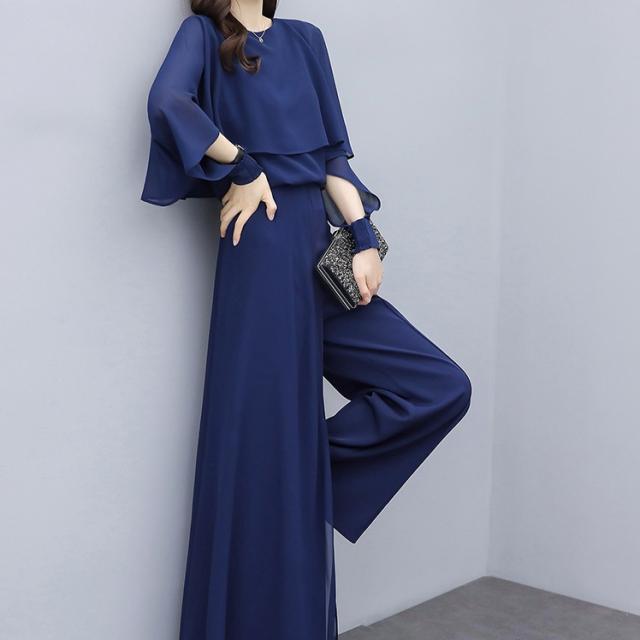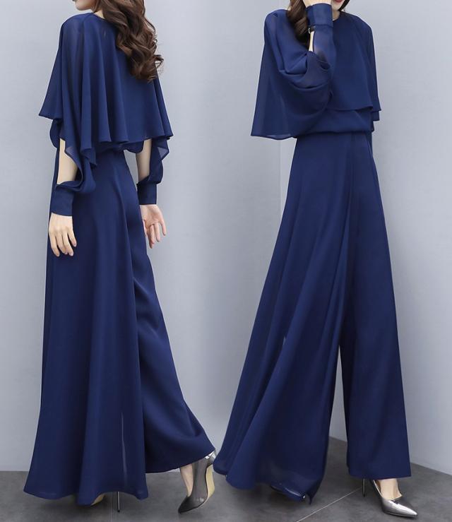 結婚式のパンツスタイル 2019年新作 パンツドレス 結婚式 お呼ばれ セットアップ レディース パーティードレス シフォン ガウチョ 上下セット お洒落 着痩せ ハイウエスト 人気 トレンド 長袖 腕見せ 無地 オシャレ エレガント フェミニン
