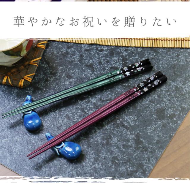 箸 夫婦箸 桐箱入 夫婦 贈り物銀桜花 1膳・グリーン 結婚祝 翌々営業日出荷 プレゼント 名入れ ギフト