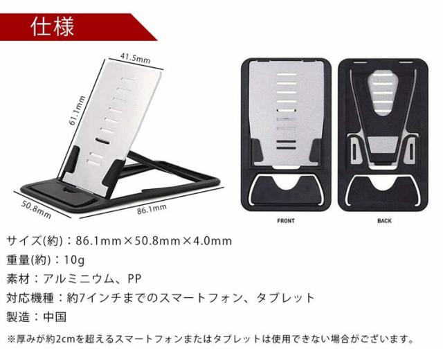 カード型 スマホスタンド 超薄型 4mm 軽量 折りたたみ 9段階 角度調整 iPhone Android PR-CARDSTAND【メール便 送料無料】