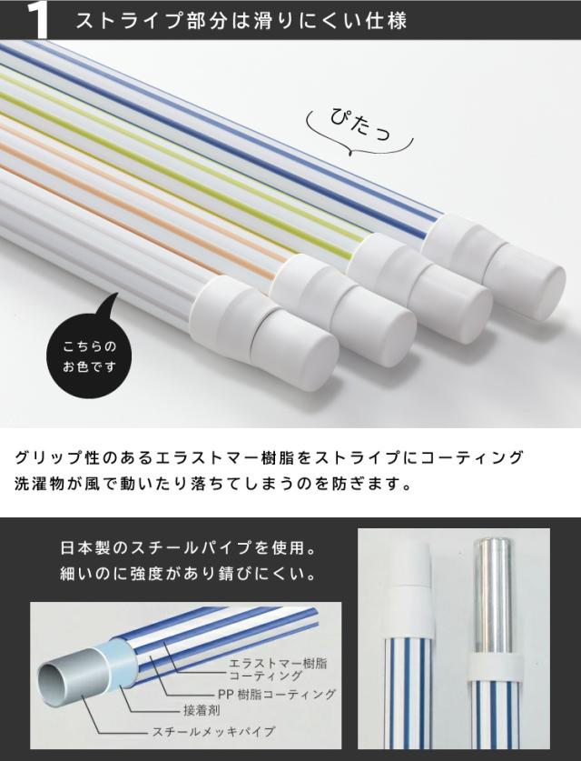 ストライプ部分は滑り止めになっているので、洗濯物が風で落ちるのを防ぎます。