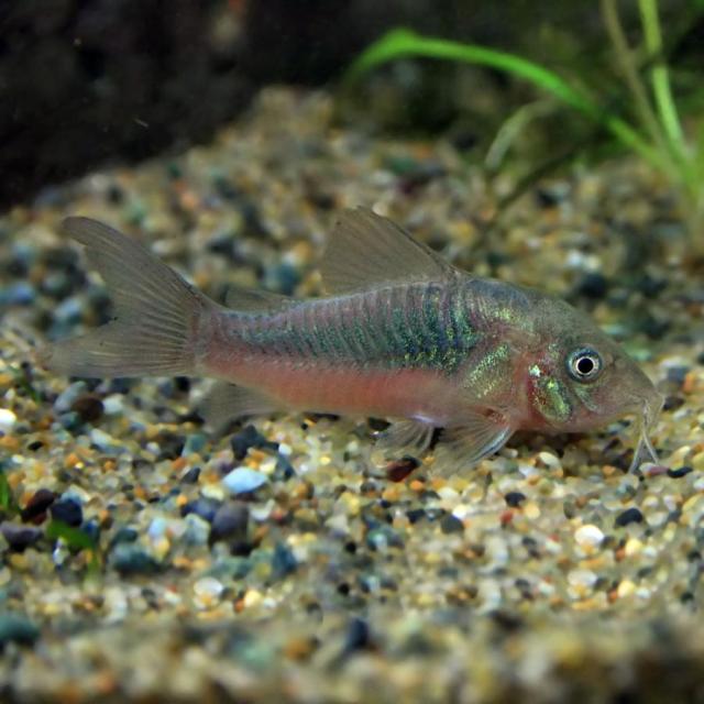 赤銅色の体にメタリックグリーンの発色を持ったコリドラスで、最もポピュラーに流通しており、赤コリとも呼ばれています。