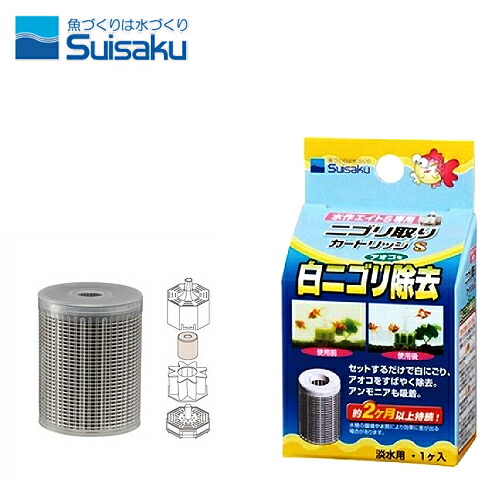 セット する だけ で 白 にごり 、 アオコ を すばやく 除去 ! アンモニア も 吸着 ! 約 2 ヶ月 以上 持続 ! ( 水槽 の 環境 や 水質 に より 効果 に 差 が 出る 場合 が あり ます 。 ) ニゴリ の もと に なる 成分 を 凝集 さ せ 、 すばやく 透明 な 水 に !