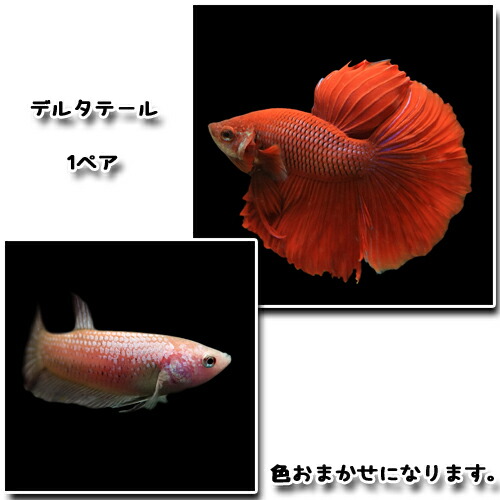 デルタテールのペアでの販売です。ペアリングが成功している個体ではありません。個体によっては相性が合わない場合もございます。オスとメスのカラー系統は合うよう出荷いたしますが、在庫状況によりカラーリングが異なる場合もございますのでご了承ください。